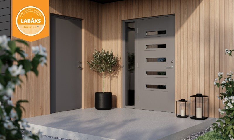 Mūsu labākas durvis ietilpst clever-line+ produktu līnijā. Tās ir līdzīgas mūsu iepriekšējām ADVANCE-LINE durvīm, kuru durvju vērtnes biezums ir 70 mm un kuras ir pildītas ar EPS. Jaunums ir durvju komplektā esošais pret laikapstākļiem izturīgais koka-plastmasas kompozītmateriāla slieksnis un Dormakaba DL9192 slēdzenes korpuss. Clever-line+ durvis var izvēlēties visos NCS toņos un arī divkrāsainas, t. i., atšķirīgā krāsā no iekšpuses un ārpuses. Ir pievienoti vairāki jauni durvju modeļi gan klasiskā, gan modernā stila cienītājiem. Modeļi ir nosaukti Ziemeļvalstu nacionālo parku vārdā. Iepazīsties ar clever-line+ durvīm šeit.